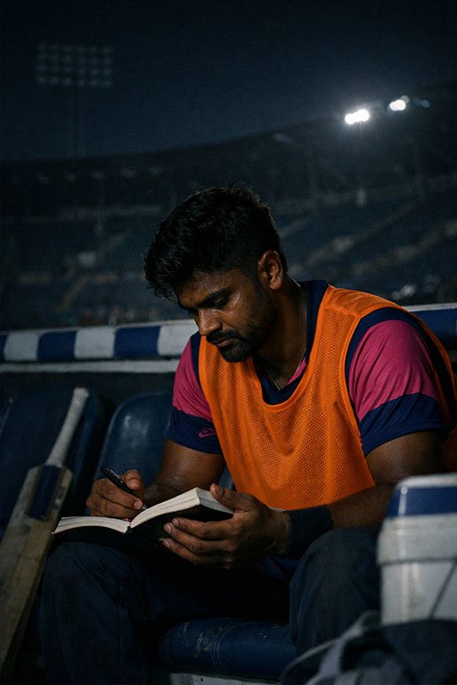 Location: The Rajasthan Royals dressing room. The team has lost a close game. The “Experts” on TV are screaming that Sanju is a “failed leader.”